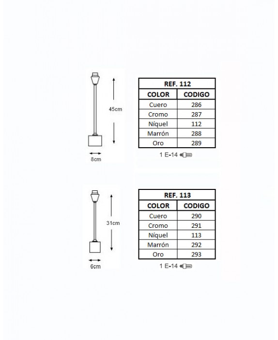 Consultar la tabla de referencias para elegir el acabado y tamaño deseado
