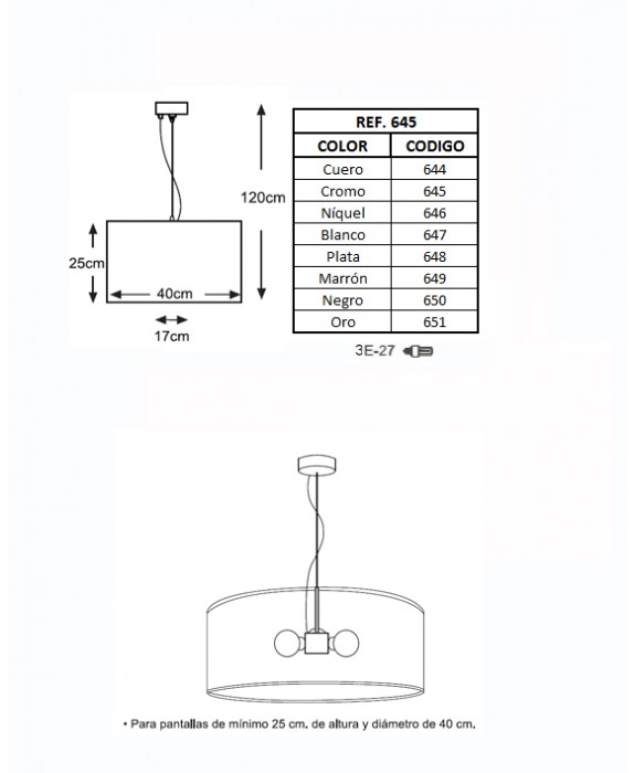 colgante 3 luces blanco con un tensor para pantalla de 40 cm