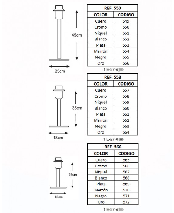 550 - 558 - 566 - Sobremesa De 25 / 36 / 45 Cm Con Base Redonda