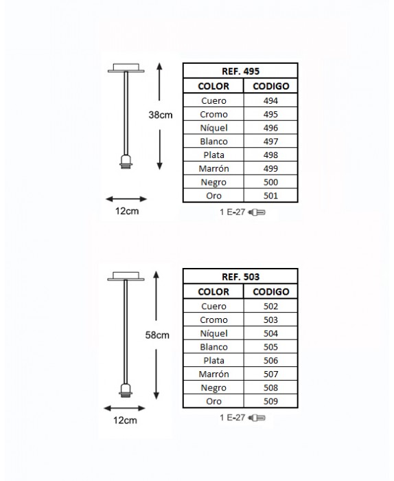 495 - 503 - Lampara Una Luz Con Barra Fija