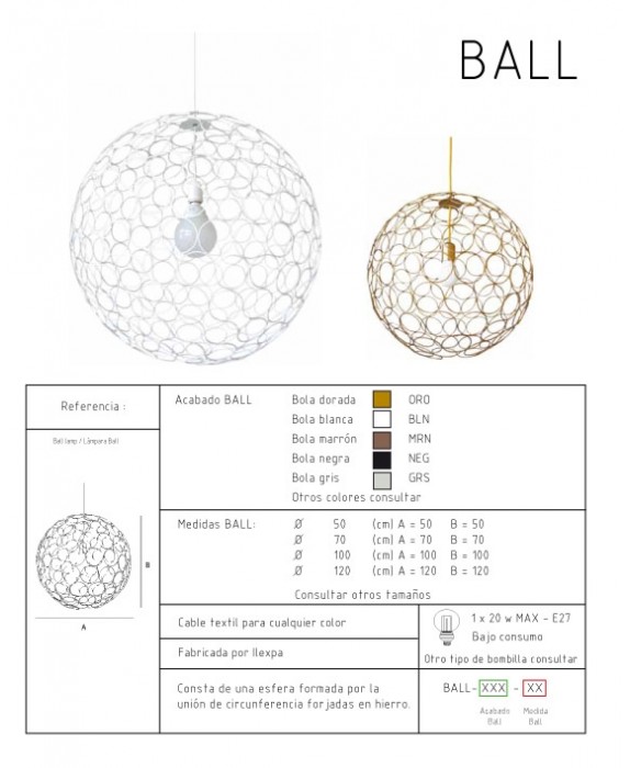 Lámpara Ball, esfera formada por la unión de circunferencias forjadas en hierro