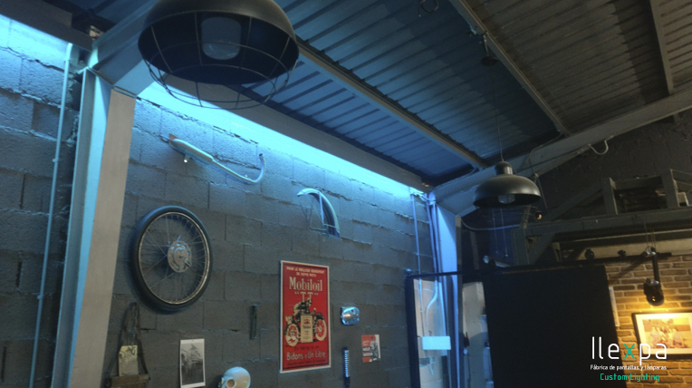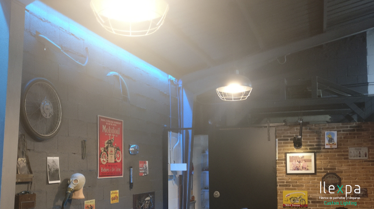Ilexpa ilumina una Exposición de motos en Bilbao con unos colgantes de hierro.