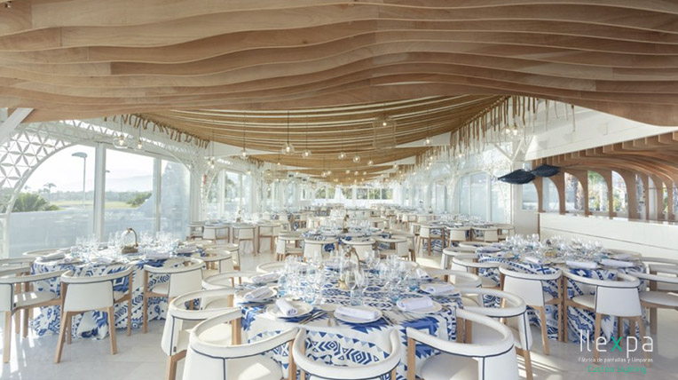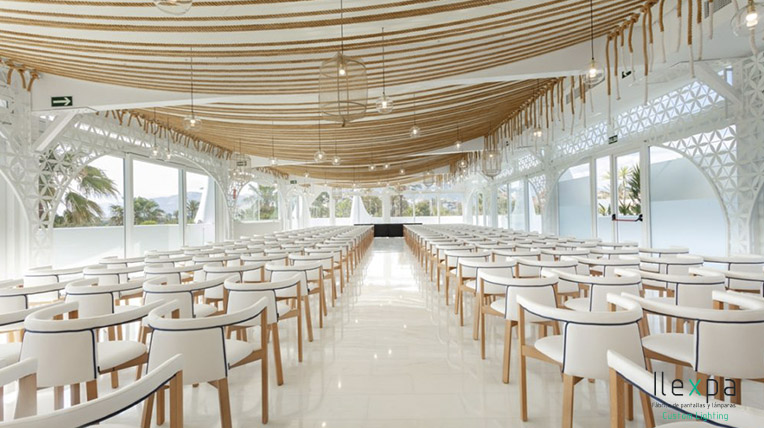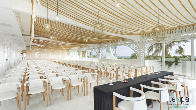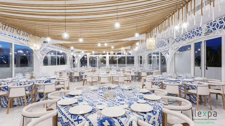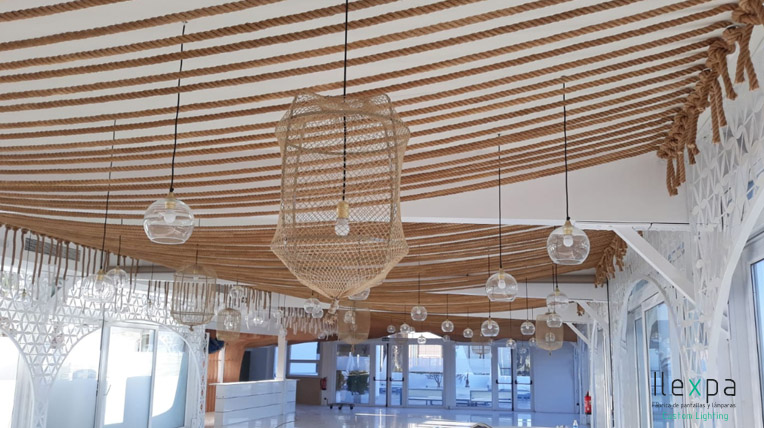 Ilexpa ilumina un Salón de Eventos en Motril con nuestras lámparas acabadas con bola de cristal y red.