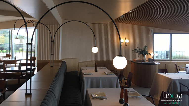 Ilexpa ilumina el comedor del hotel Akelarre en San Sebastián con Pies de Salón de 2,5 metros de altura, colgantes, sobremesas y apliques.