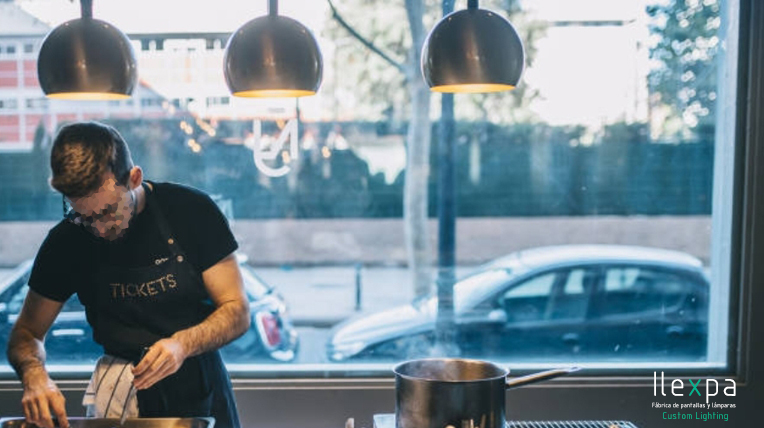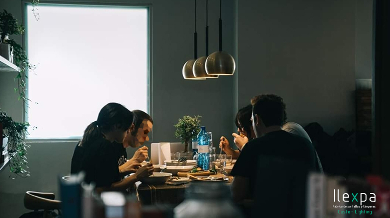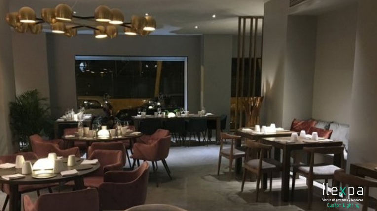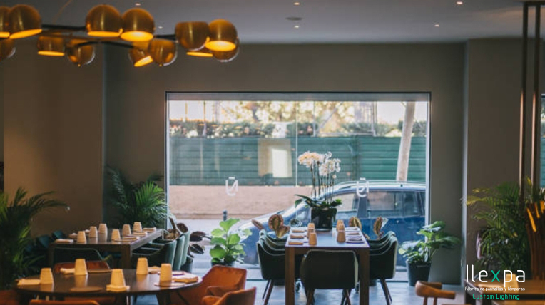 Ilexpa ilumina un Restaurante con unos Colgantes decorados en negro y oro.