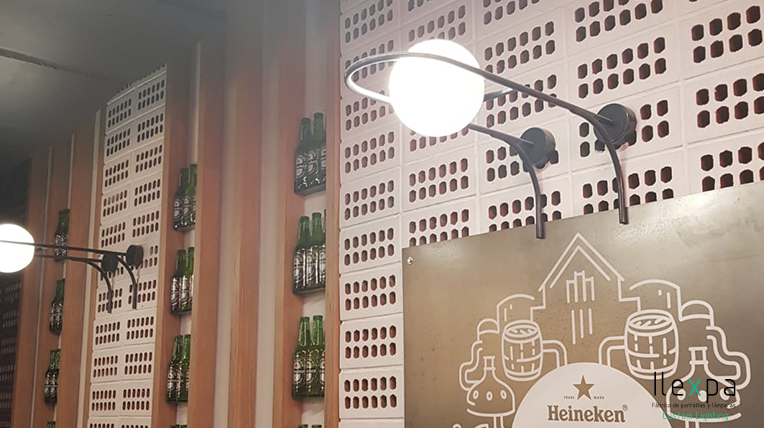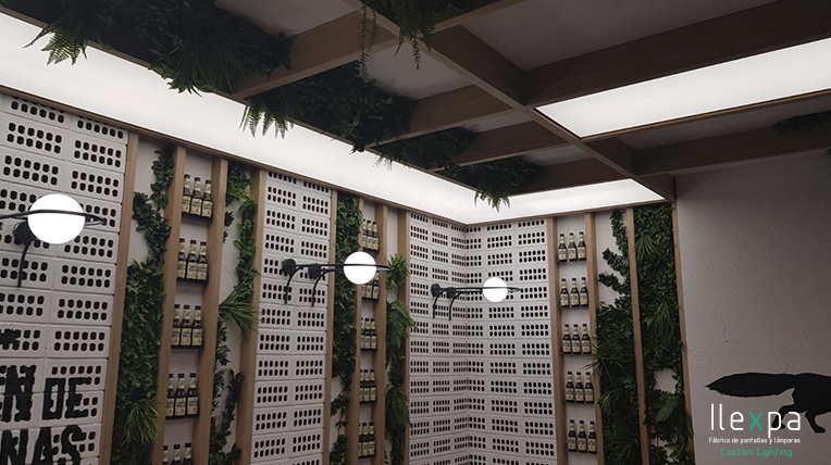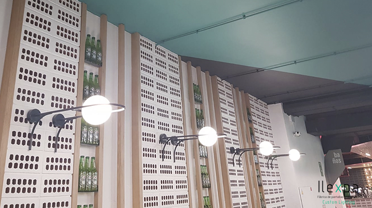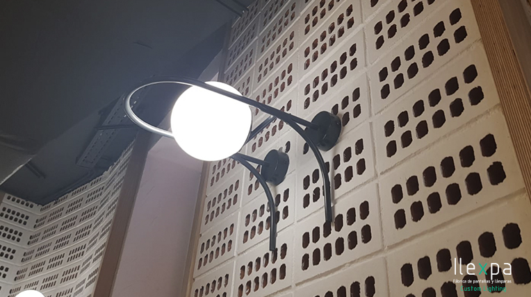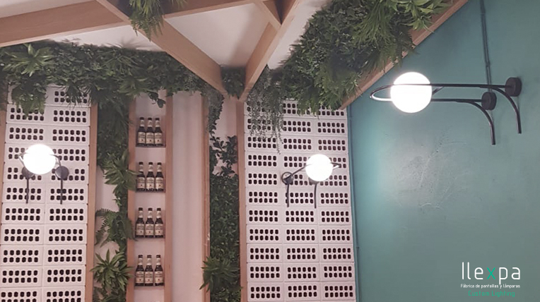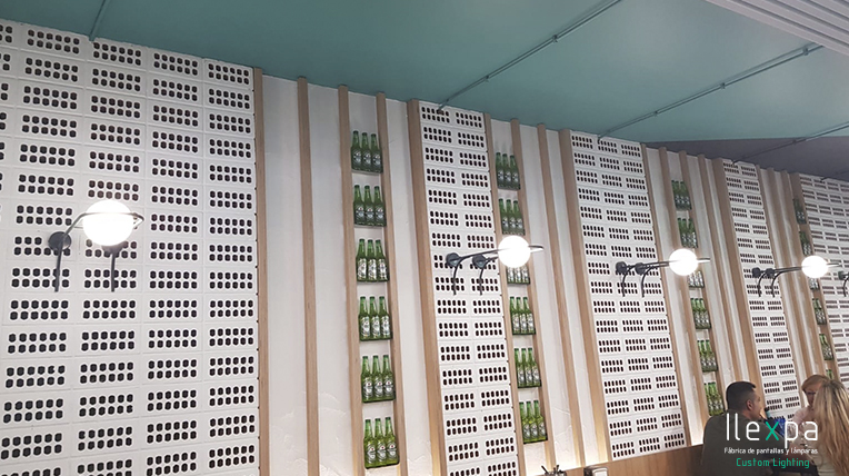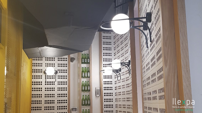 El Mercado San Valero situado en la Gran Vía Germanías, 21 (Valencia) confía en Nihil Estudio para la iluminación del local con unos apliques con tulipa de cristal.