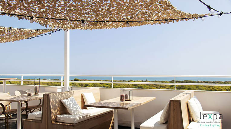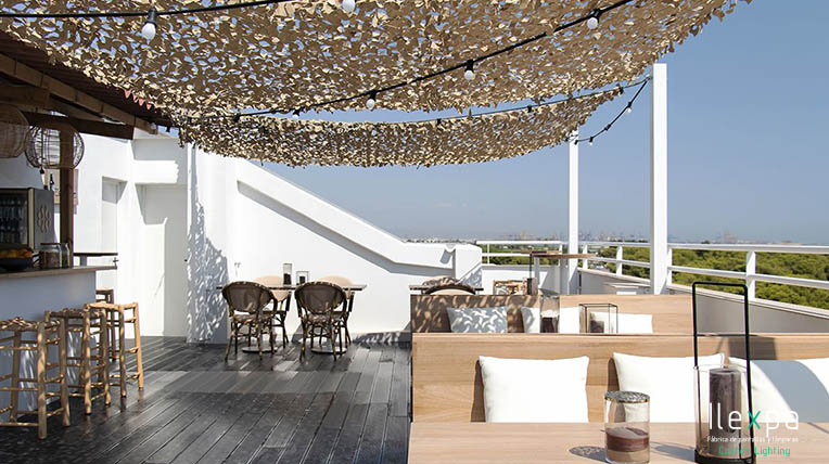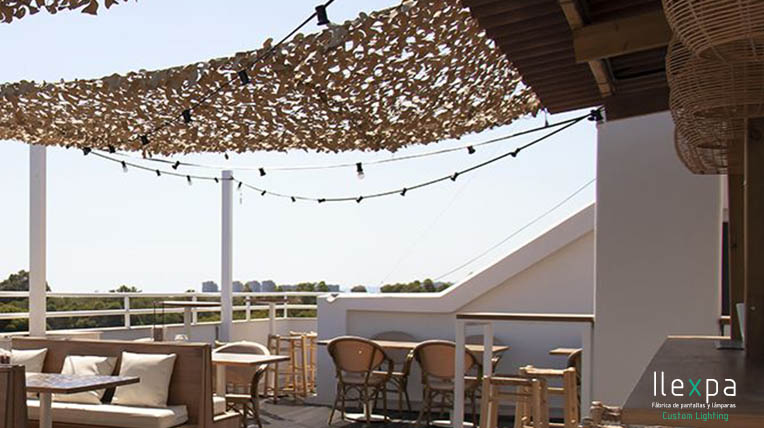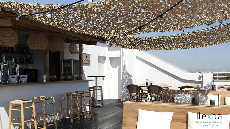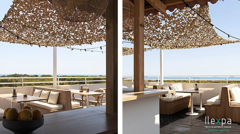 Ilexpa junto con Nihil Estudio iluminan la azotea de un Hotel en El Saler (Valencia), con colgantes de bambú y guirnaldas decorativas.