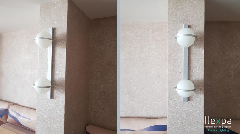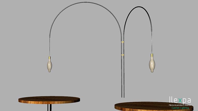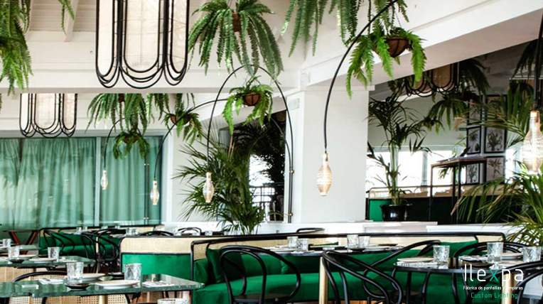 Ilexpa junto con Parolio iluminan con apliques con forma de arco, apliques con tulipa de cristal, Colgantes y apliques Sol el Restaurante Palmira de Florida Beach en Mijas.