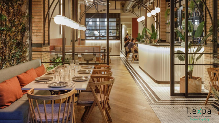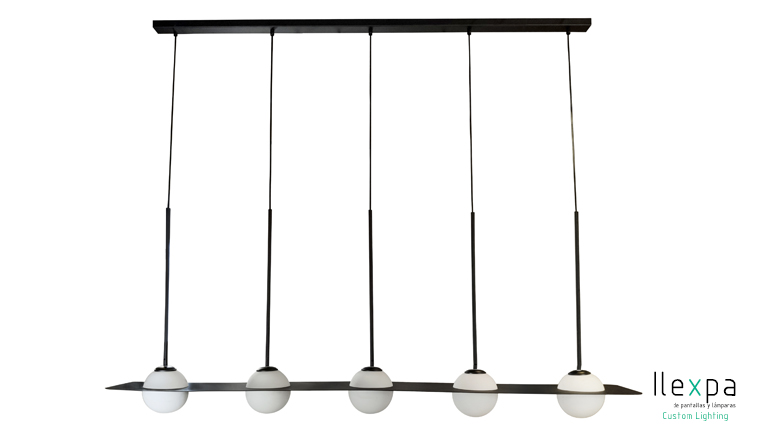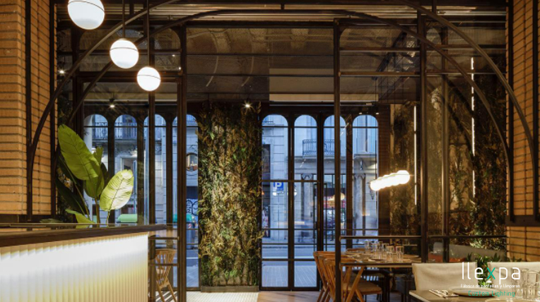 Ilexpa ilumina una hamburguesería con unas lámparas decorativas, la lámpara consta de 5 luces acabadas en tulipas opal encastradas.