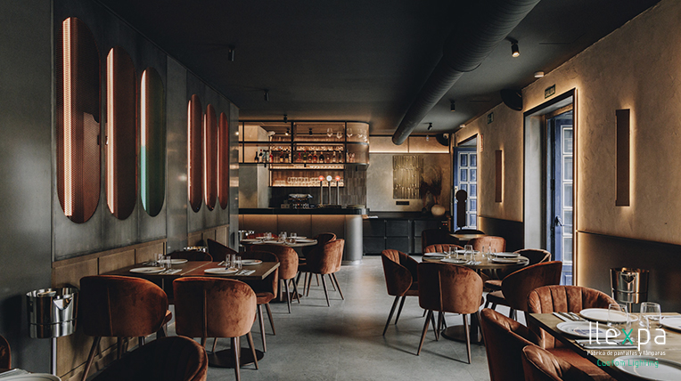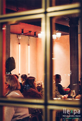ilumina un restaurante en Madrid con unos apliques de tubo.