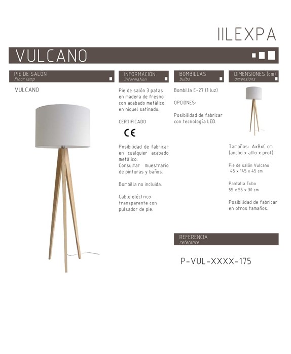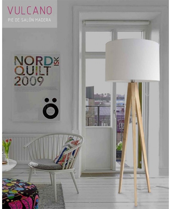 Pie de salón vulcano de líneas limpias y sencillas, ideal para la iluminación de interior en casas de estilo moderno.