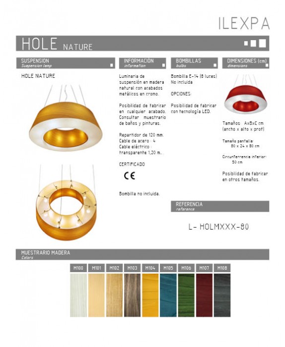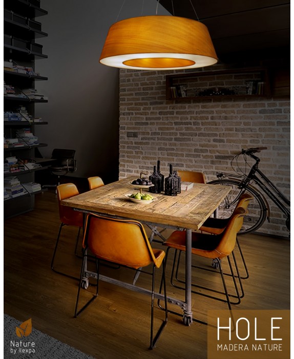Luminaria Hole Nature, ideal para la iluminación de estancias con un toque moderno. Las maderas naturales y tintadas le dan un aspecto elegante a la estancia.