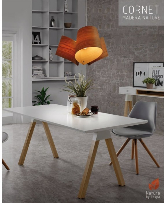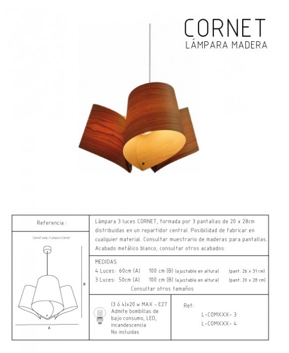 Colección Cornet Nature, realizadas en madera laminada, una nueva línea de luminarias con pantallas de madera sin armazón metálico, que la hacen flexible y minimizan su cubicaje.