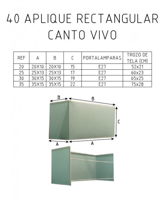 Pantalla forma Aplique Rectangular Canto Vivo Tela Cliente